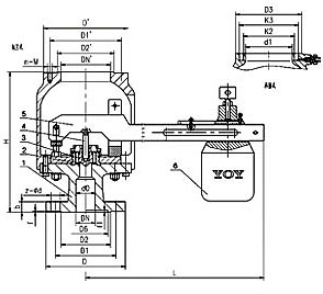 GA41H、A51H型安全閥除杠桿(材料為碳鋼),重錘(材料為鑄鐵),其余材料均和A41H-16C型彈簧式安全閥相同。 |