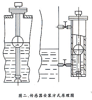 3、傳感器在被測容器上,其安裝方法見圖二,傳感器下端好與容器底部固定牢。